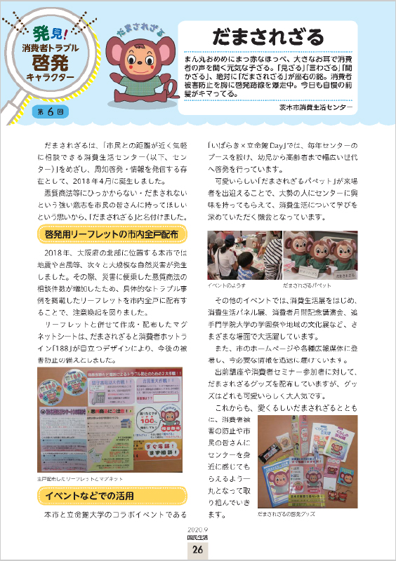 また、「だまされざる」は、国民生活センターが発行する機関誌「国民生活」にて2020年9月に