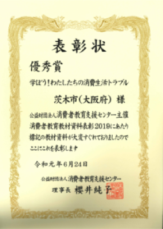 消費者教育教材資料表彰2019にて優秀賞を受賞しました。